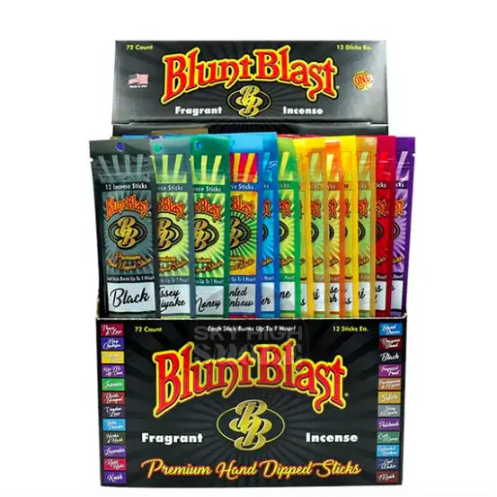 Experience the aromatic delight of Blunt Blast Jumbo Incense, presented in a convenient zip-locked bag of 12-inch sticks for optimal freshness. Choose from an array of captivating fragrances, including Patchouli, Kush, Lavender...